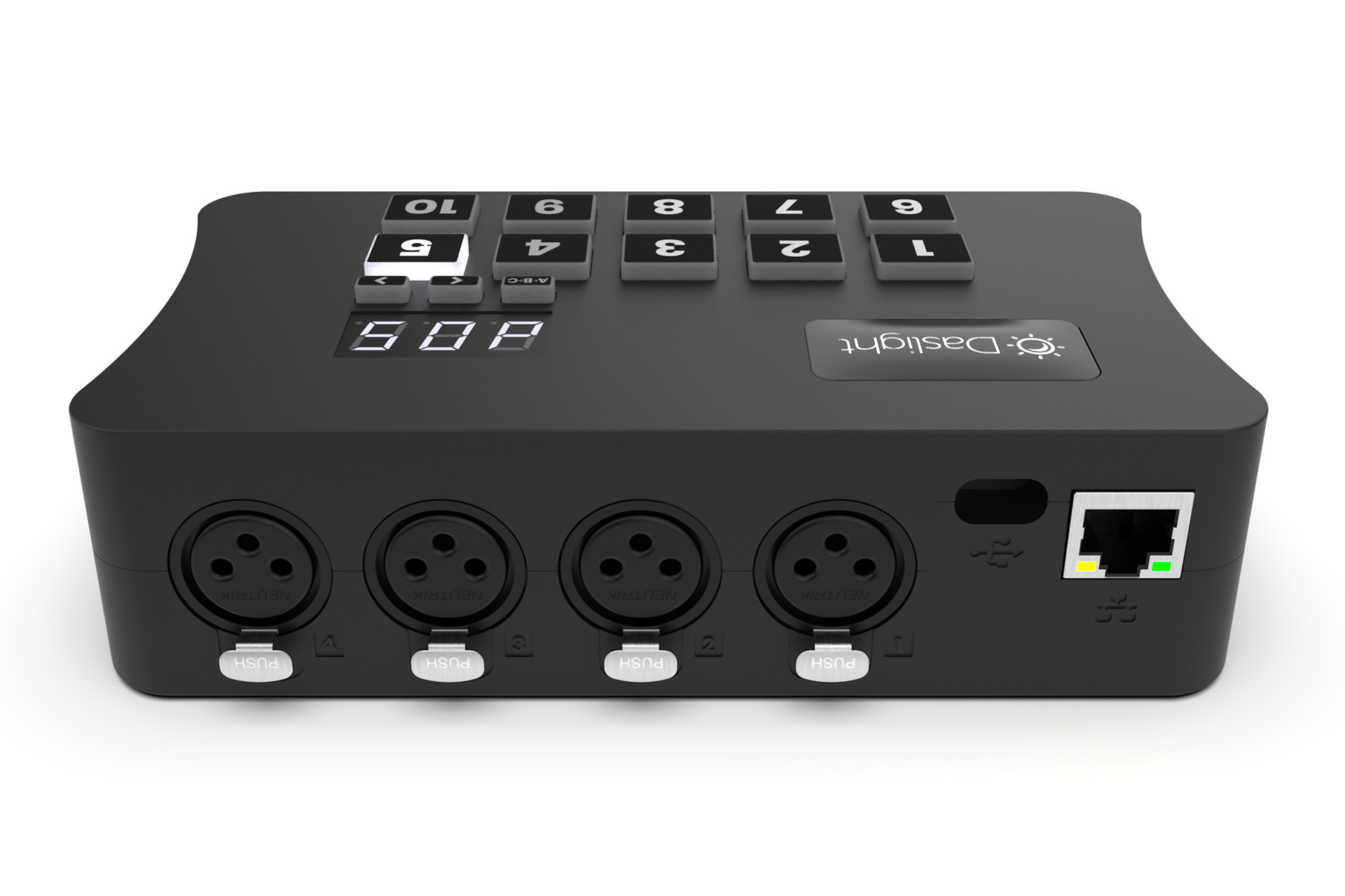 Dank des schlanken Designs fügt sich das DVC Gold nahtlos in jede Arbeitsumgebung ein. SD-Karten-Speicherfunktion ermöglicht den Standalone-Betrieb, während die vollständige Kompatibilität mit Daslight 4 und 5 eine leistungsstarke Softwaresteuerung gewährleistet. USB-C und Ethernet-Anschlüsse machen das Gerät sofort einsatzbereit.
