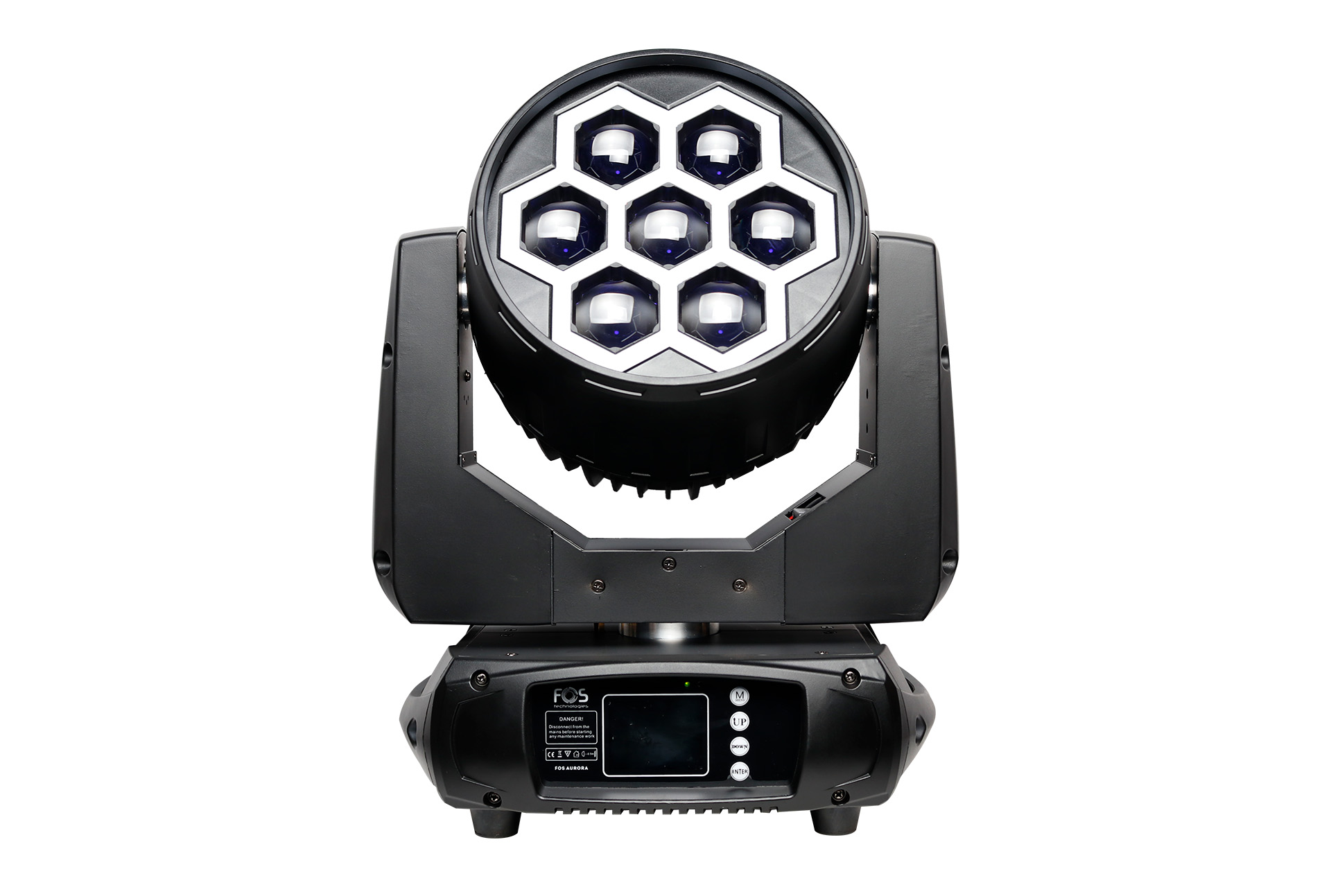 Der FOS Aurora ist ein innovativer Moving Head, der klassische Wash‑Effekte mit auffälligen „Neon‑Glow“ Pixel‑Lichteffekten kombiniert. Er nutzt zwei verschiedene LED‑Systeme: leistungsstarke 7 × 40 W RGBW LEDs für die Haupt‑Wash‑Projektion und 90 × 5050 SMD LEDs rund um die Optik für auffällige Nebel‑ bzw. Kontur‑Lichteffekte.