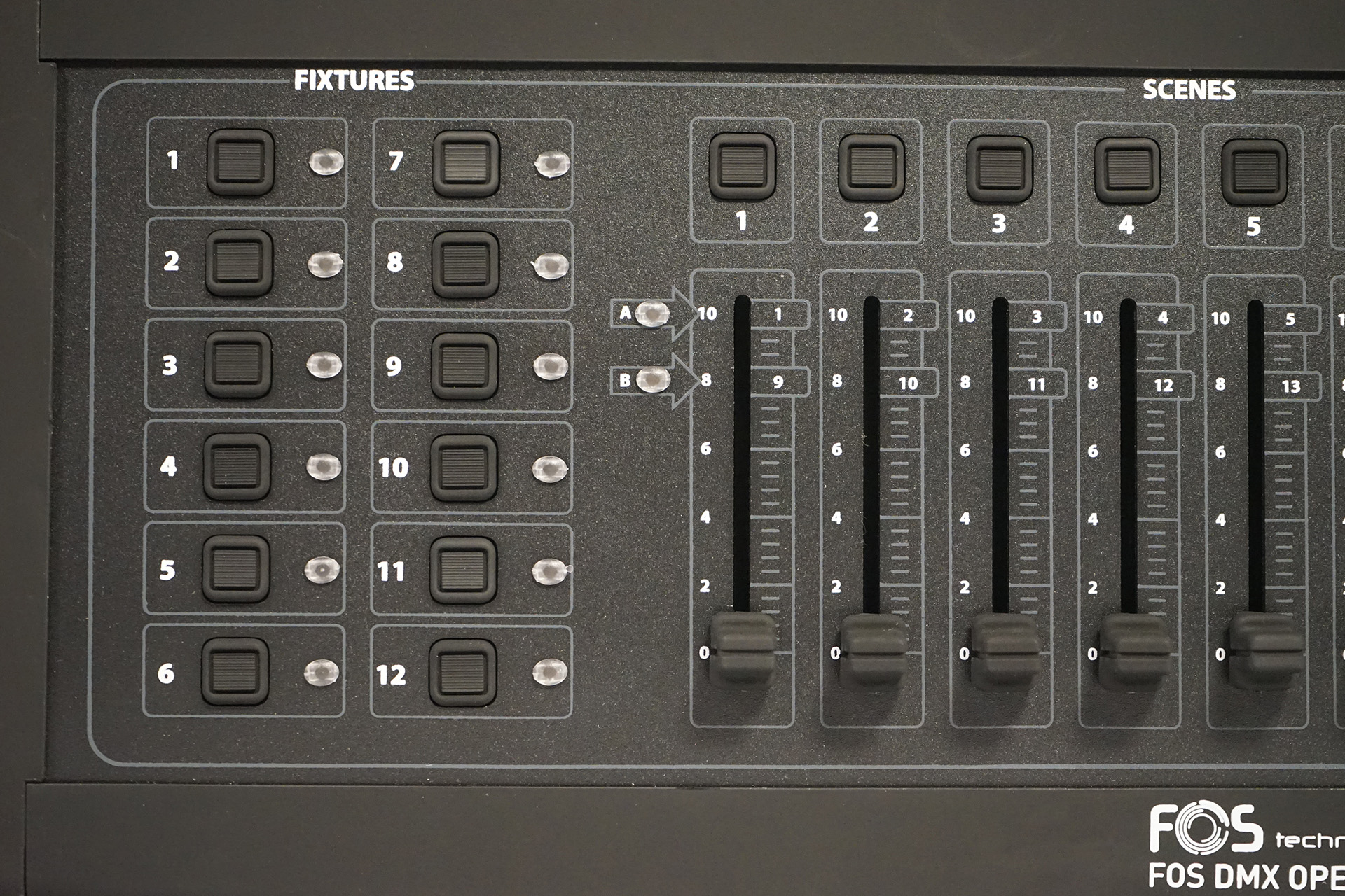 | Unterstützte Fixtures | Bis zu 12 Geräte mit je max. 16 Kanälen |