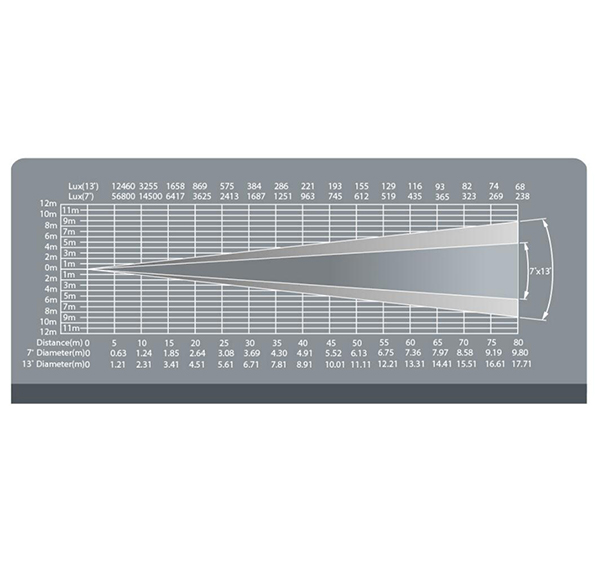 Motorisierter Zoom (7°–13°) für flexibel einstellbare Beam-Breite