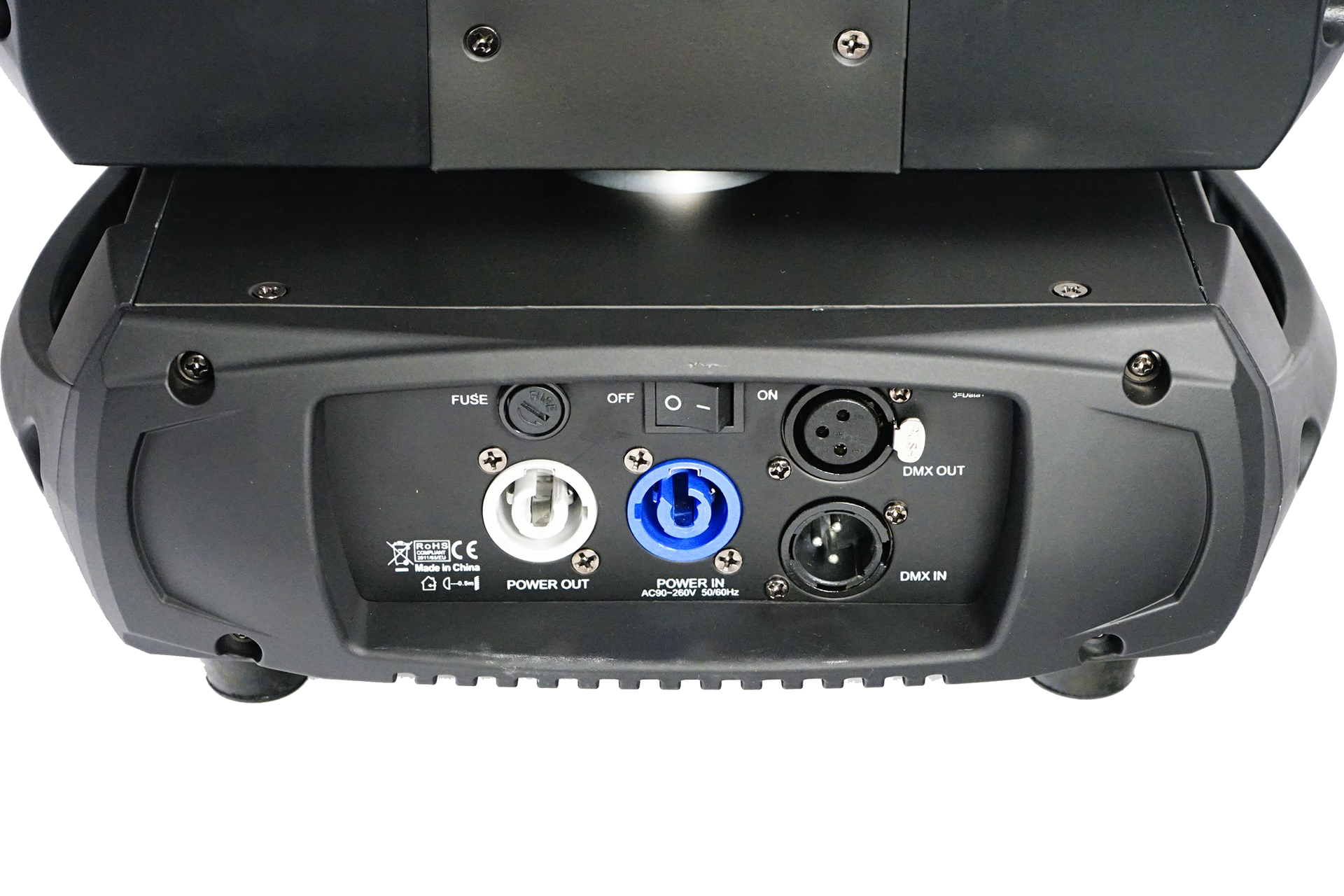 Dank Camlock-Omega-Bügeln und PowerCON In/Out ist der Movinghead schnell einsatzbereit und lässt sich unkompliziert in bestehende Setups integrieren. Ein 2,4″ TFT-Display erleichtert die Bedienung, während motorischer Fokus, Prisma und umfangreiche Gobo-/Farboptionen kreative Lichtgestaltung ermöglichen.