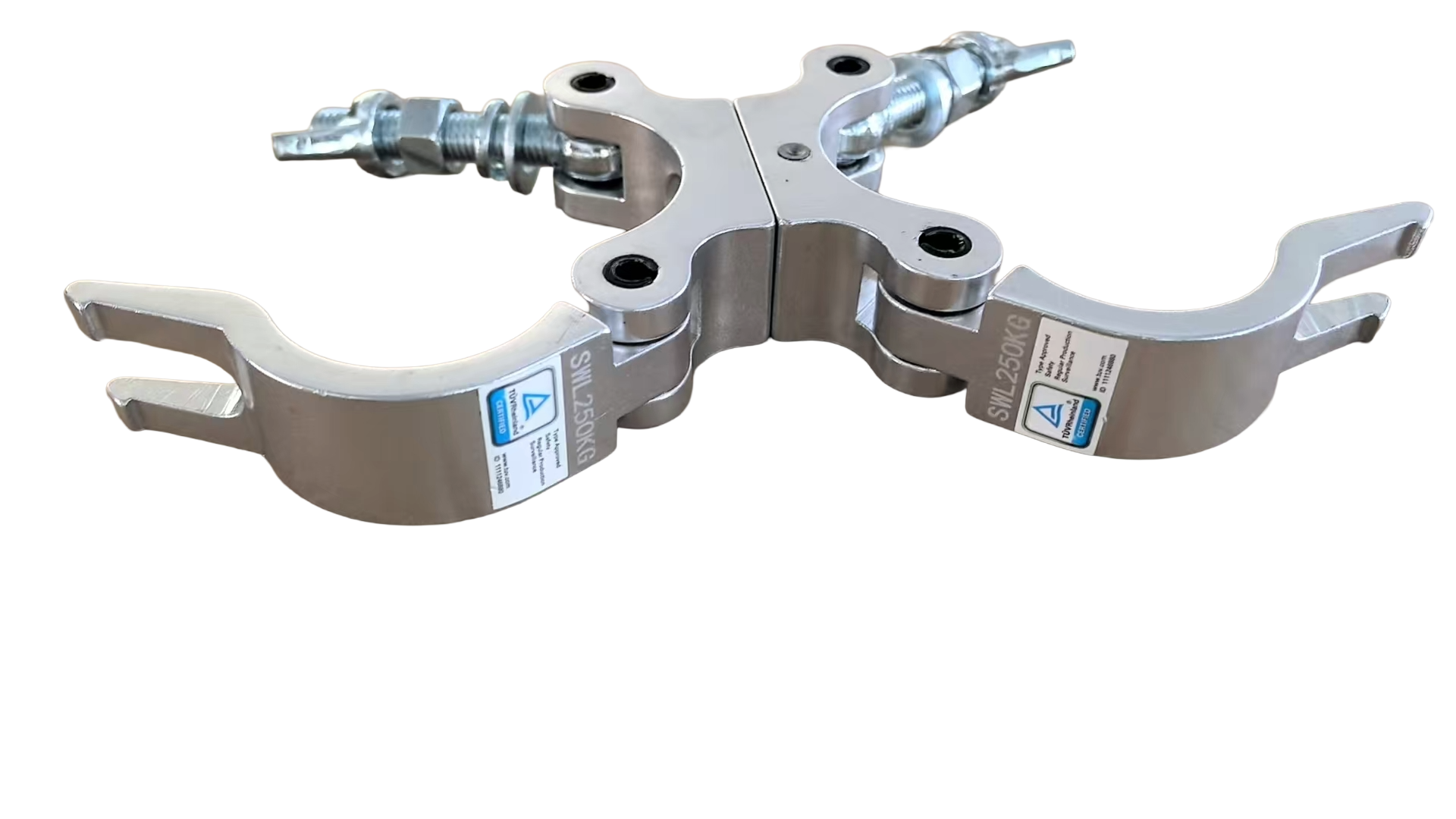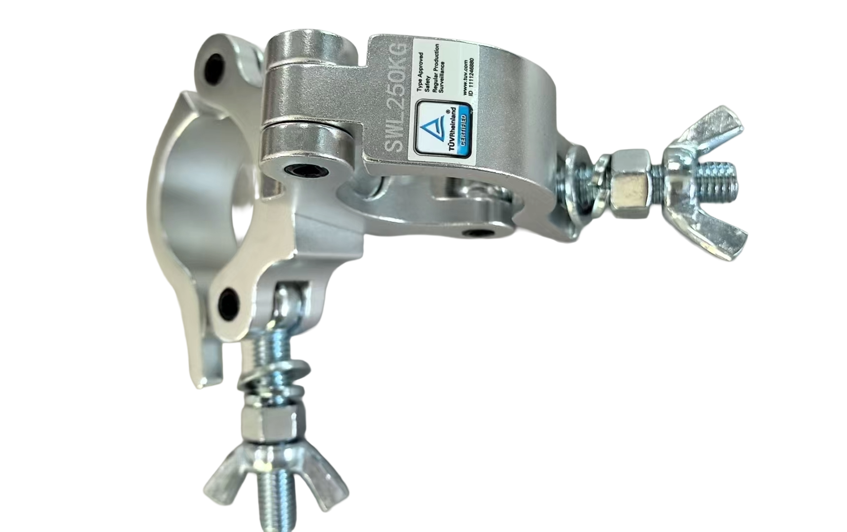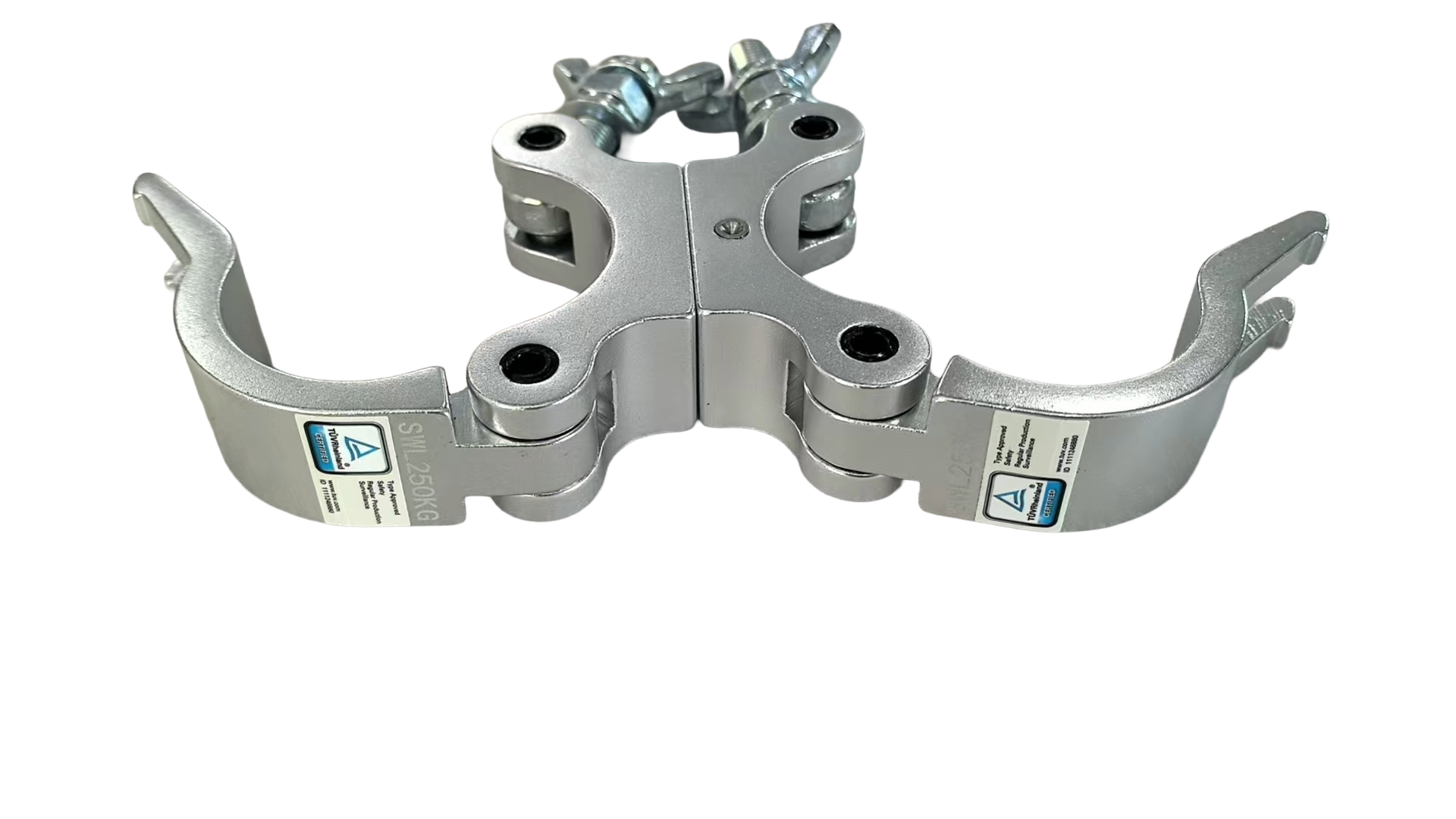 Die FOS Swivel Clamp ist eine professionelle, drehbare Doppel-Rohr-Schelle zur sicheren Befestigung von Licht- und Eventtechnik. Mit einer Traglast von bis zu 250 kg eignet sie sich ideal für Traversen, Bühnen- und Touring-Anwendungen. Robuste Verarbeitung, flexible Ausrichtung und zuverlässiger Halt machen sie zur perfekten Lösung für professionelle Installationen.