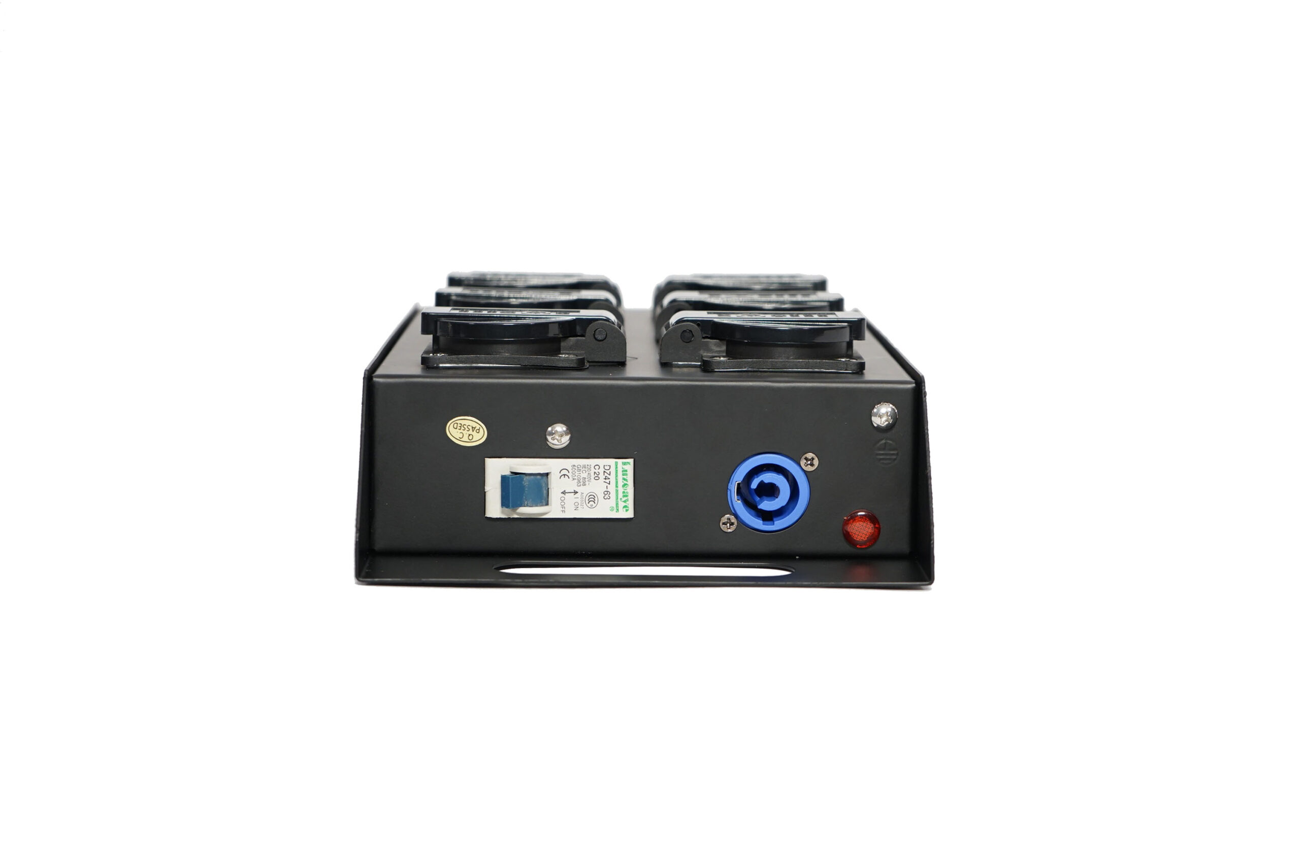 Stromverteiler (Splitbox) für Powercon‑Eingang auf mehrere Schuko‑Ausgänge