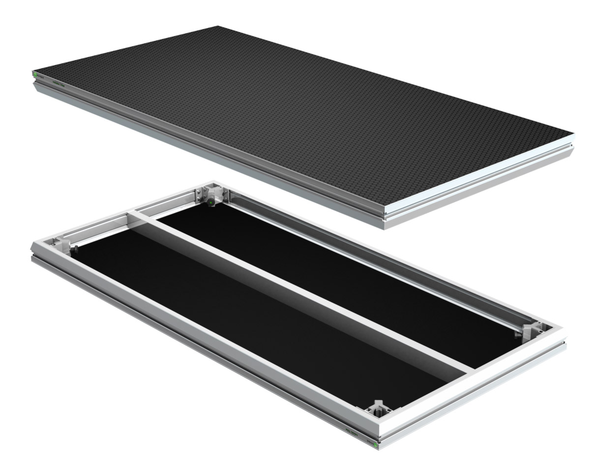 ist das perfekte Bühnenpodest für professionelle Anwendungen! Mit einer maximalen Belastbarkeit von 750 kg/m² kombiniert es Stärke und Stabilität auf kleinstem Raum. Gleichzeitig sorgt die modulare Bauweise für eine flexible Integration in jede Bühne, Tribüne oder Messefläche.