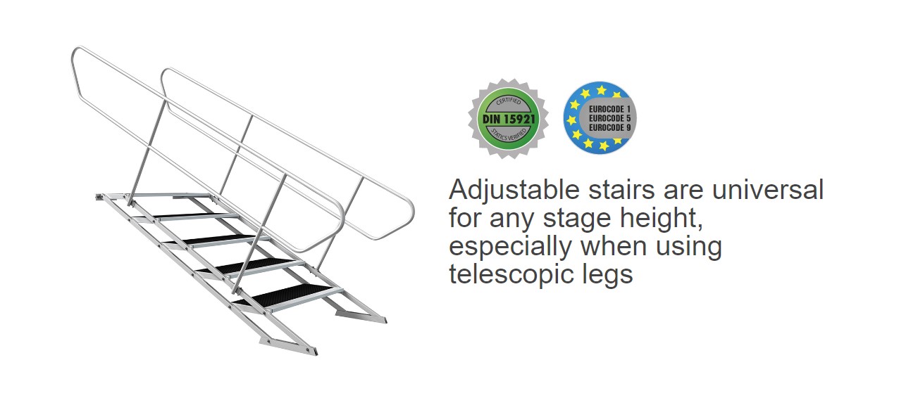 Die FS‑AS‑60-100 Treppe ist die ideale Ergänzung für Podesthöhen von 60-100cm .Sie ermöglicht einen sicheren und komfortablen Auf- und Abstieg auf Ihre Bühne, Tribüne oder Messestand. Durch die stabile Bauweise und die einfache Montage lässt sich die Treppe flexibel einsetzen und garantiert maximale Sicherheit bei Veranstaltungen.