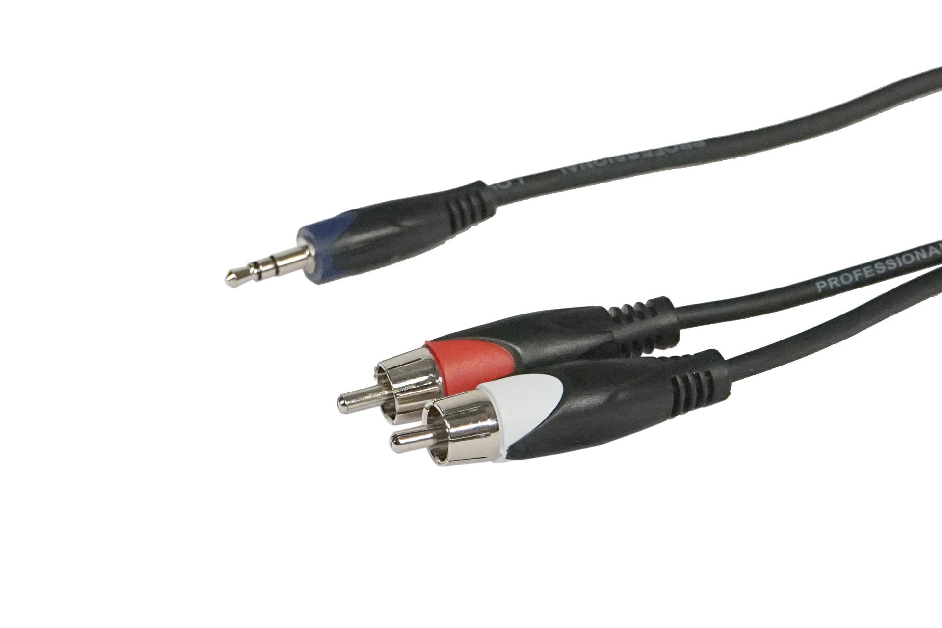 Anschlüsse: 2 × Chinch (Rot/Weiß) → 3,5 mm Stereo-Miniklinke